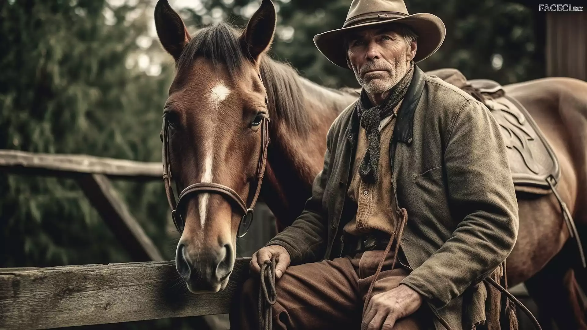 Mężczyzna, Kapelusz, Płot, Koń - faceci.biz